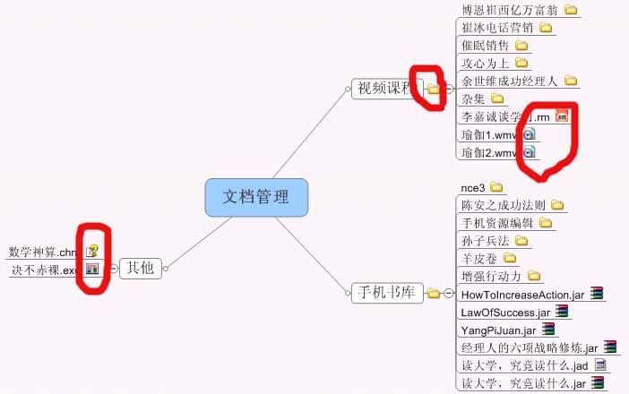 5、分门别类整理文档,使导图尽量简洁,点击导图旁边圈中的图标,即可直接打开文档。