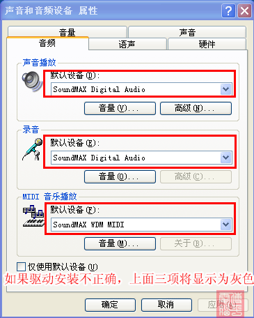 注意:只有正确安装了声卡的驱动程序之后才能进行第四步的设置。