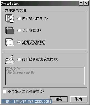 启动PowerPoint,在"新建演示文稿"对话框中选择"空演示文稿"。