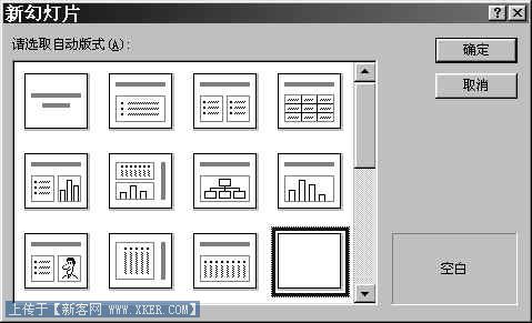 在选取版式对话框中选择"空白版式"。