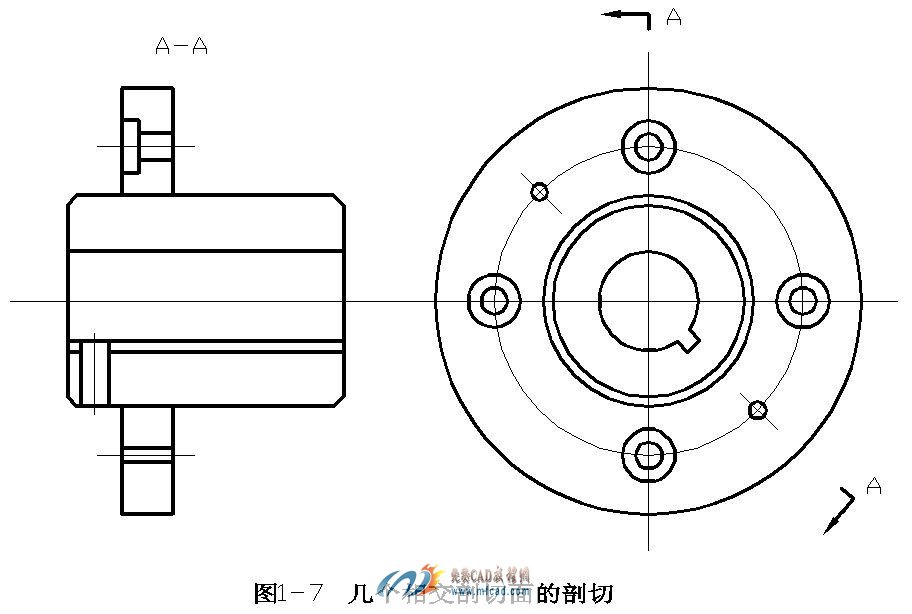 从以上实例看出,这种剖视常用于盘类零件,例如凸缘盘、轴承压盘、手轮和带轮等,以表达孔、槽的形状和分布情况。也可用于具有一个回转中心的非回转面零件。