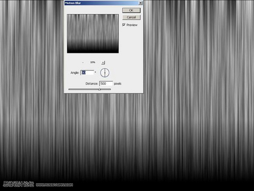 4、选择滤镜/模糊/动感模糊,设置角度为90,距离为500,效果如下。