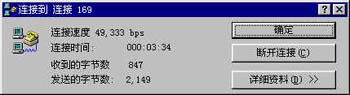 这个窗口中的提示信息会随着拨入的进程不同而有不同的提示,依次为“正在检验用户名和密码”“正在登录网络”。请耐心等待,直到这个窗口自动最小化到任务栏并出现这样的图标,说明你连接到网络了。