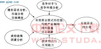 目前,相当数量的互联网创业者对“人气或眼球”、有效商业模式和风险投资青睐这三者之间的关系存在一些认识上的偏颇,导致许多网站无法获得可观的收益,既不能收回前期投资,也不能养活网站并维持网站正常的运营和发展,更无法获得风险投资的青睐。挖掘互联网产业的有效需求要从分析人们的需要开始,但是,有需要不一定能够转化为有效需求。这一点在互联网产业表现的最为明显,例如人们对互联网企业提供的邮件服务需要量巨大,但是如果每发一份邮件都实行收费制,需求将大大降低,因此,互联网产业存在严重的“搭便车”现象。要想把这种潜在需求转化为有效需求要求互联网产业创业者提供一种有效的商业模式。在选择有效商业模式时我们又必须分析这种有效商业模式的技术特点与实现能力的可能性和政府政策的限制。同时,我们也必须分析我们的竞争对手的有效商业模式和竞争策略的选择。只有通过上述的完整分析,互联网产业创业者才有可能把潜在的需求转化为现实的有效需求。我们把这种分析互联网产业有效需求的方法称为挖掘互联网产业有效需求的5要素分析法(见图1),下面我们将按照从潜在需求到有效商业模式到有效需求的分析框架逐一展开分析。