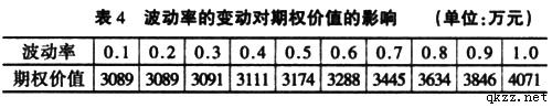 4.实物期权价值的敏感性分析