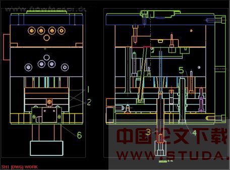 1.A板 2.B板 3.推板 4.推板 5.顶针板 6.顶针托板