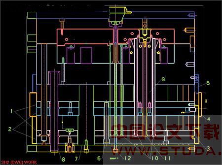 9.下模镶件 10.顶针 11.推方杆 12.司筒针