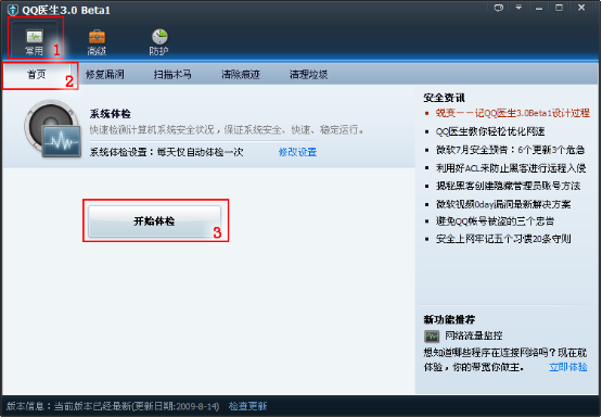 1、打开QQ找到“常用”->“首页”,点“开始体检”: